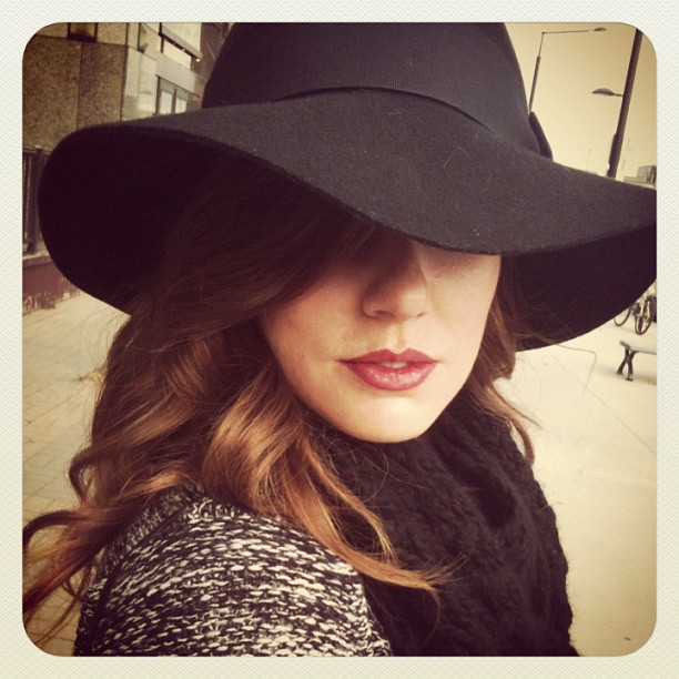 Hat Holt Renfrew, scarf Crochet hand made Le Foulard Réconfort, top & pants H&M, handbag Harricana, boots Zara
